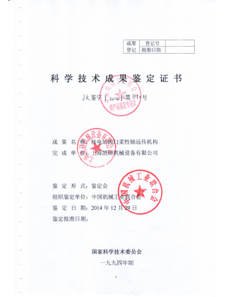 科學技術(shù)成果鑒定證書(五防鎖)
