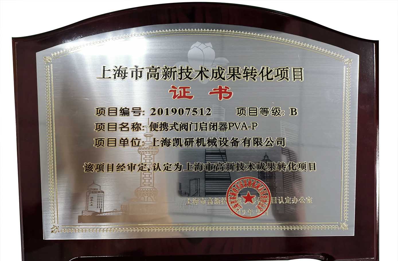 近日,上海凱研機(jī)械設(shè)備有限公司自主研制的“便攜式閥門啟閉器”被認(rèn)定為2019年上海市高新技術(shù)成果轉(zhuǎn)化項(xiàng)目。